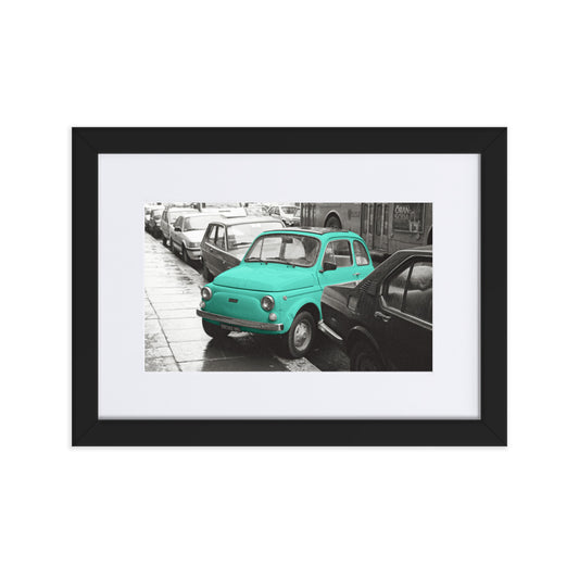 RF Matte Paper Framed Poster With Mat “Cinquecento turquoise”, Rome 1989
